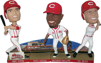 Now through April 30, fans can vote on reds.com to decide which Reds pitcher will be featured with a 2009 bobblehead. The Fans Choice Bobblehead will be given to the first 30,000 fans on Saturday, July 18 and is part of a collectible set of four bobbleheads that fit together to form a special ballpark background. The three other bobbleheads in the series are Joey Votto (May 9), Jay Bruce (July 4) and Brandon Phillips (Aug. 15).