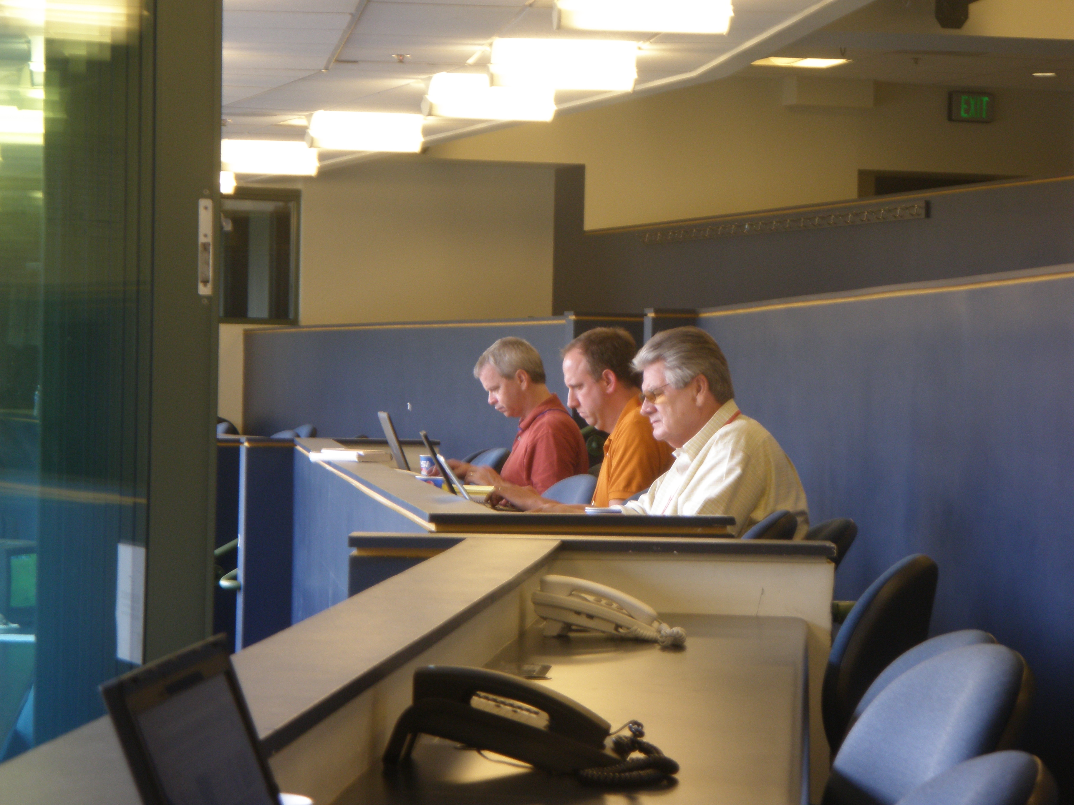 From far to near, John Fay of the Cincinnati Enquirer, Mark Sheldon of MLB.com and Hal McCoy of the Dayton Daily News. It’s a rare sight to see all three regular beat writers on the road these days.