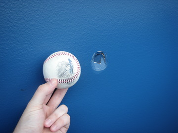 In the first inning of last night’s game, a foul ball hit by Braves catcher Brian McCann hit the wall behind the first row of the press box. It hit two seats away from me and split between Reds director of media relations Rob Butcher and Hal McCoy of the Dayton Daily News.
