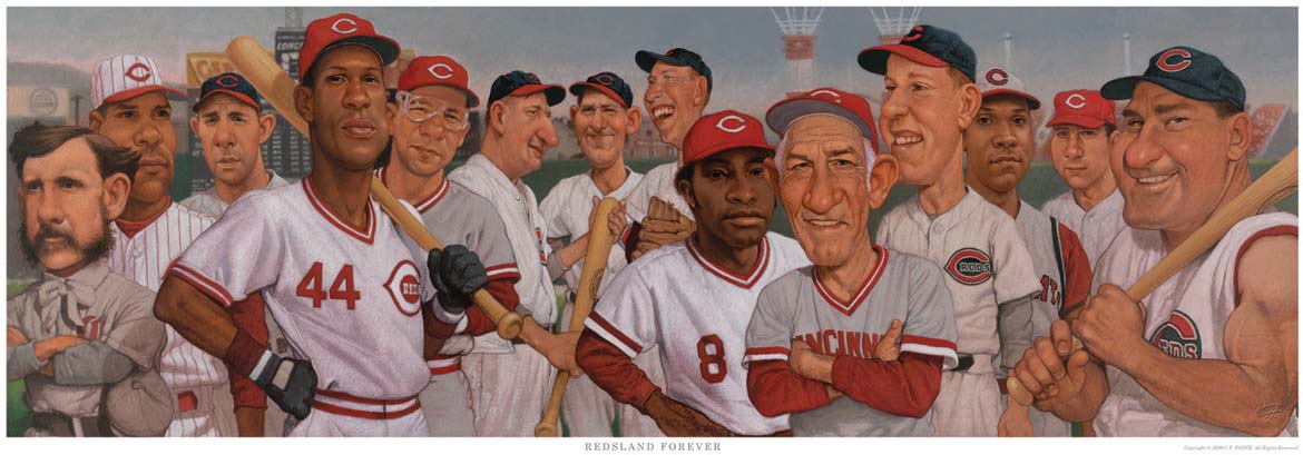 A total of 1,500 copies of the print will be available for purchase. Each of the 1,500 limited edition prints is individually numbered. Prints numbered 1 through 500 are signed by C.F. Payne, framed and available for $250. Unsigned, numbered prints are $50 each. Prints are available exclusively at the Cincinnati Art Museum Shop starting Nov. 12. Call the Museum Shop at (513) 639-2958 to reserve yours today. They will also be available online at www.reds.com.