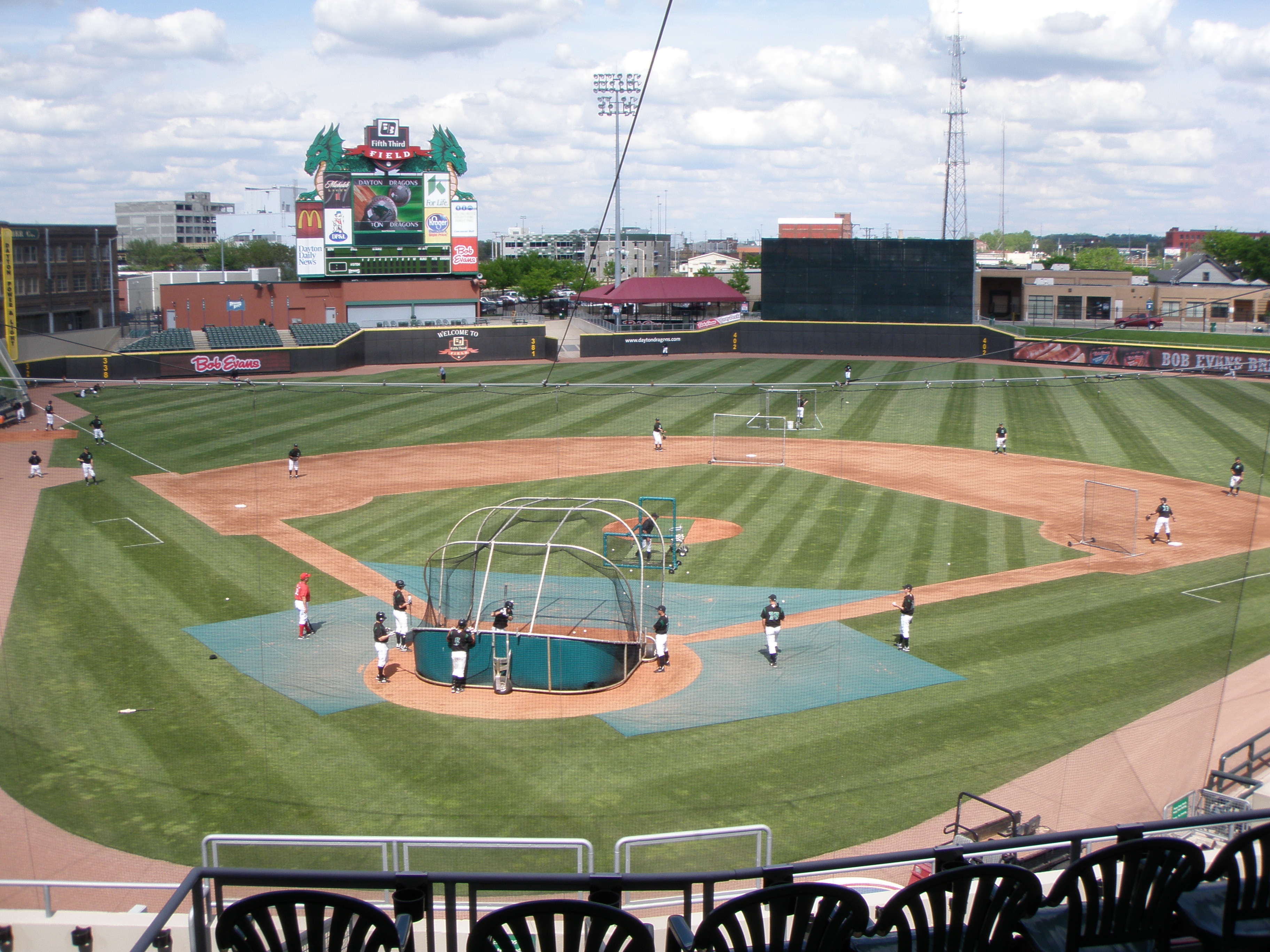 Here is the view of Dragons’ batting practice from Fifth Third Field in Dayton. This was shortly before the horn sounded signaling the opening of the gates. If you’ve been there before, you know what I mean.
