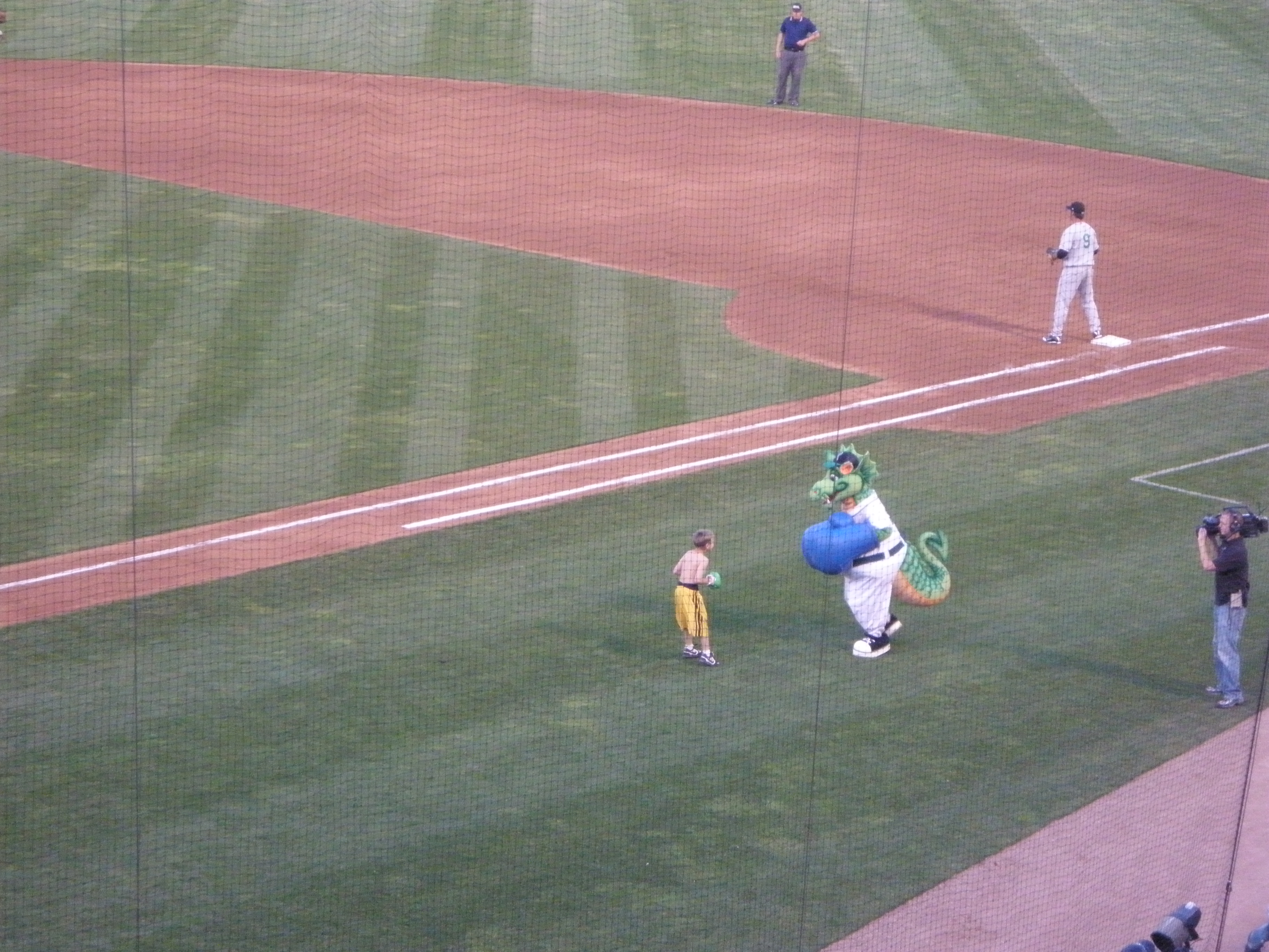 Dragons’ mascot Heater disrespected this young fan. They settled it as they did in the old days; they threw fisticuffs.